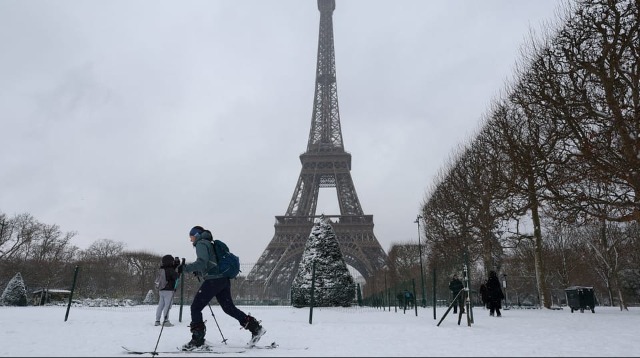 Neve congestiona transporte na Europa e parisienses recorrem aos esquis07/01/2026